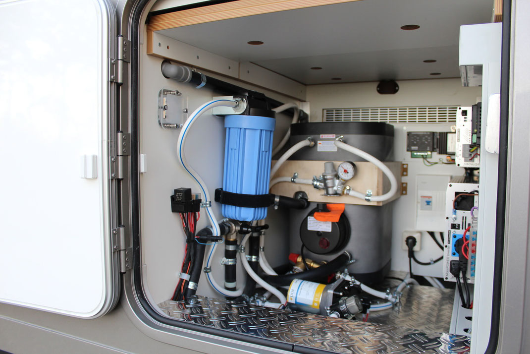 6. Untersuchen Sie die Abwasser- und Frischwassersysteme auf Risse oder Lecks in den Tanks, Anschlüssen und Schläuchen.